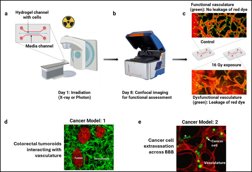 Aim 2: Investigate the radiation response and damage in the vascularised CRC/GBM-on-a-chip model.